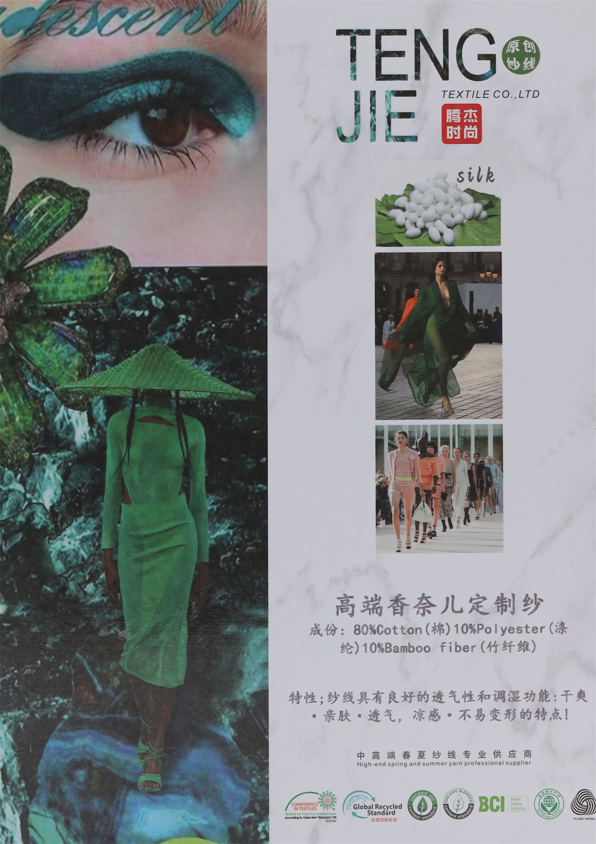 成分:45%立体棉 50%冰氨纤维 5%莫代尔粘胶
